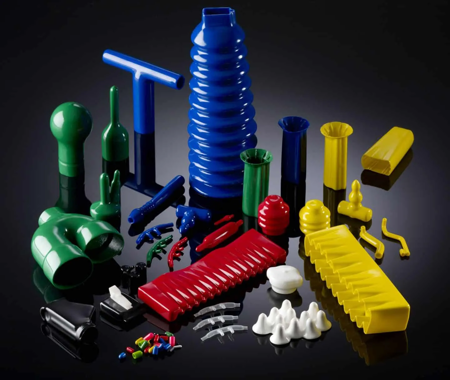 The vinyl part can be stripped from the mold after it has cooled to a solid. Even “female” parts produced on geometrically complicated “male” mandrels can be stripped relatively easily because the solidified material is quite elastic.
